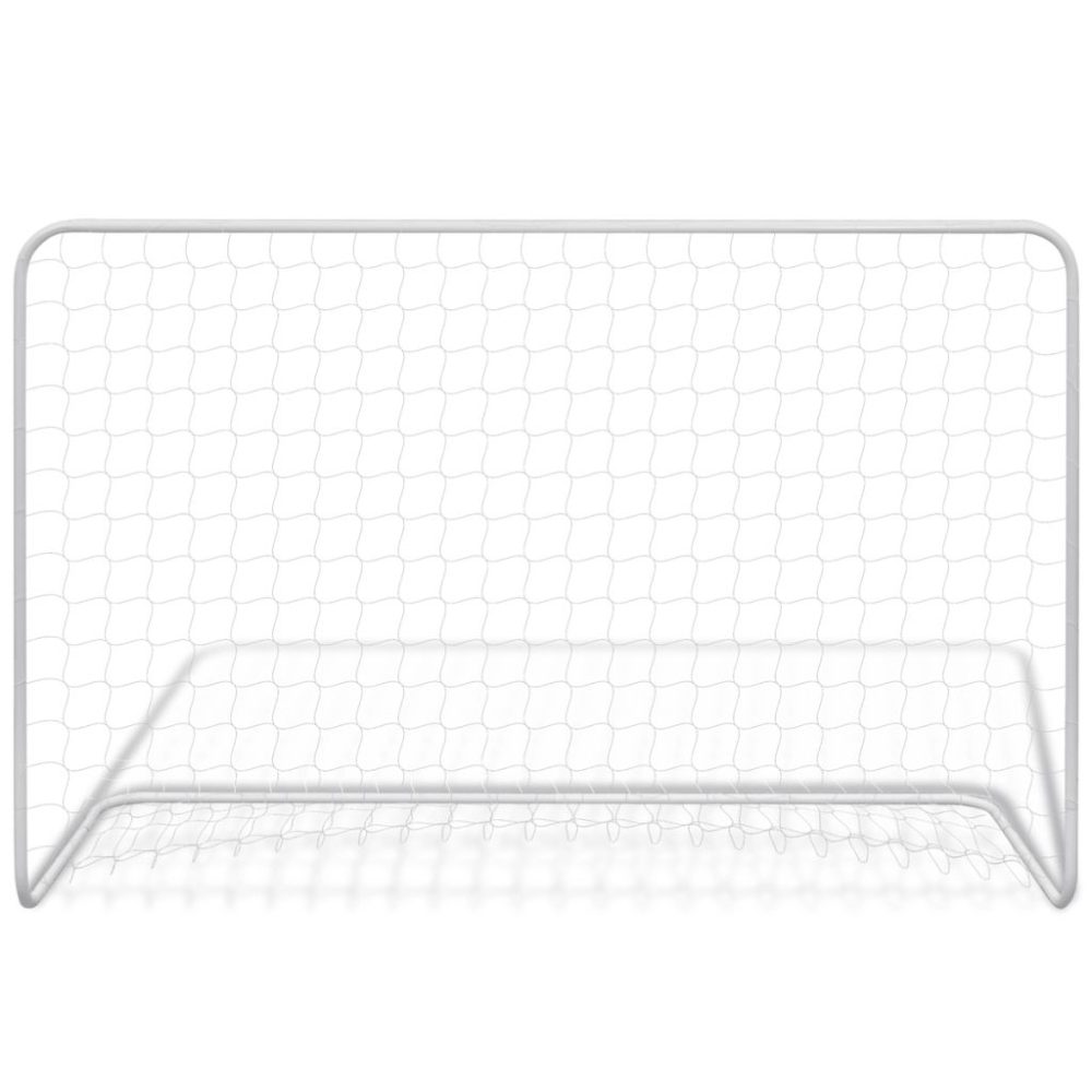 A entrega inclui 1 balizas de futebol com rede, 8 ganchos de aço e 4 conjuntos de parafusos.