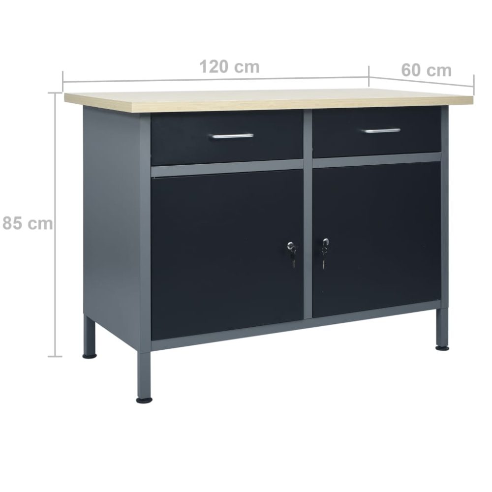 O tampo grande e resistente fornece uma plataforma estável para todos os seus trabalhos de reparação. A bancada possui 2 gavetas, permitindo-lhe organizar bem as suas ferramentas, peças e acessórios, tais como parafusos, pregos e fita adesiva. As gavetas estão equipadas com um mecanismo de rolamento de esferas para um deslize suave. Existem 2 armários com portas bloqueáveis que são adequados para ferramentas de maiores dimensões, podendo acomodar facilmente brocas, tambores de ginchos e amoladores.