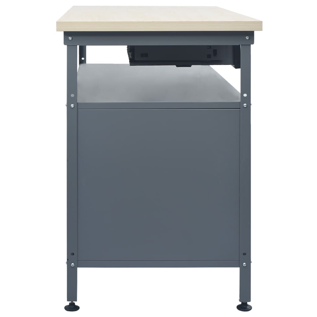 O tampo grande e resistente fornece uma plataforma estável para todos os seus trabalhos de reparação. A bancada de trabalho possui um compartimento aberto equipado com uma gaveta, permitindo-lhe organizar bem as suas ferramentas, peças e acessórios, bem como parafusos, pregos e fita adesiva. Existem compartimentos adequados para ferramentas de maiores dimensões e 2 armários com portas bloqueáveis, que podem acomodar facilmente brocas, tambores de cabo e amoladores.