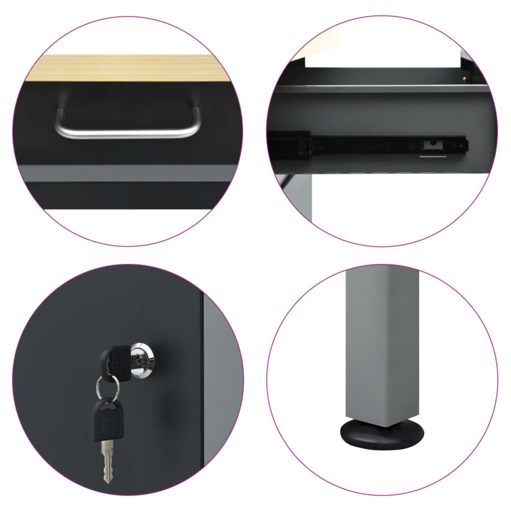 Esta bancada resistente, que se destaca pelo seu amplo espaço de arrumação e 500 Kg de capacidade de carga, será um complemento essencial para a sua oficina e garagem. O tampo grande e resistente fornece uma plataforma estável para todos os seus trabalhos de reparação. A bancada possui 6 gavetas, permitindo-lhe organizar bem as suas ferramentas, peças e acessórios, tais como parafusos, pregos e fita adesiva. Todas as gavetas estão equipadas com um mecanismo de rolamento de esferas para um deslize suave. Existem 2 armários com portas bloqueáveis que são adequados para ferramentas de maiores dimensões, podendo acomodar facilmente brocas, tambores de ginchos e amoladores. Os pés são ajustáveis em altura, permitindo-lhe colocar a estação de trabalho onde precisar e permanecendo firme mesmo em terrenos irregulares. Esta estação de trabalho é fabricada em aço e contraplacado de alta qualidade, tornando-a ainda mais resistente, durável e fácil de limpar. A montagem é fácil. A bancada de trabalho será um excelente auxiliar, caso deseje concluir trabalhos de reparação ou tornar reais os seus sonhos de bricolage!