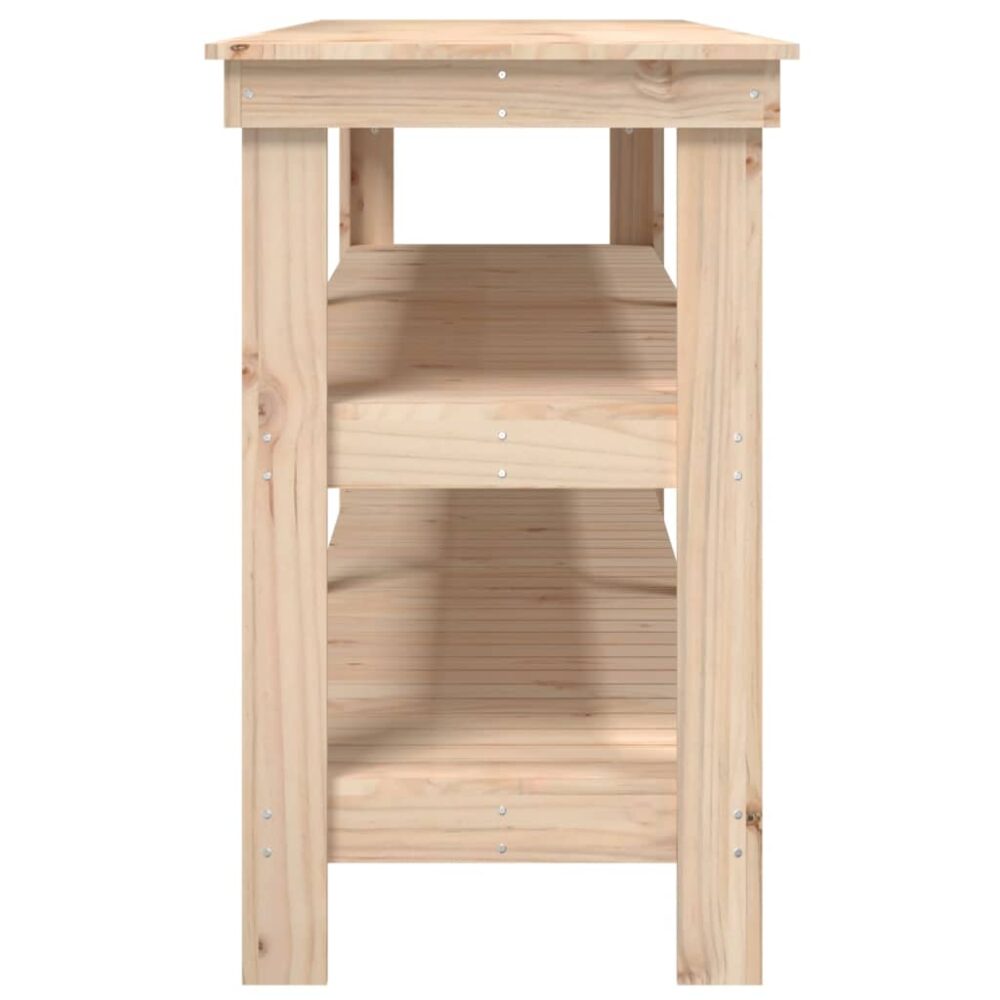 Esta bancada de trabalho em madeira é um complemento prático para a sua área habitacional. Madeira de pinho maciça: a madeira de pinho maciça é um bonito material natural. A madeira de pinho possui um grão reto e os nós conferem ao material o seu aspeto rústico.Amplo espaço de arrumação: esta mesa de trabalho com prateleiras fornece bastante espaço de arrumação para manter os seus artigos bem organizados e fáceis de alcançar.Estrutura robusta: a estrutura de madeira assegura robustez e estabilidade. Atenção:Para evitar que o produto se vire, deve utilizar o dispositivo de fixação na parede fornecido.Nota:Cada produto é fornecido com um manual de instruções na caixa para facilitar a montagem.