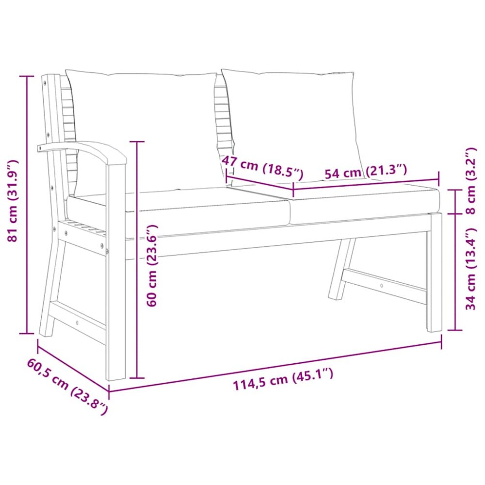 O banco é feito em madeira de acácia maciça de alta qualidade, uma madeira tropical resistente às intempéries e altamente durável. Graças ao acabamento a óleo, o conjunto de móveis de pátio apresenta uma cor quente e é fácil de limpar e cuidar. A entrega inclui ainda almofadões de assento e de encosto espessamente acolchoados para o máximo conforto. Esta peça pode ser combinada com outros produtos da nossa loja, permitindo ao cliente construir o seu próprio conjunto de sofás.