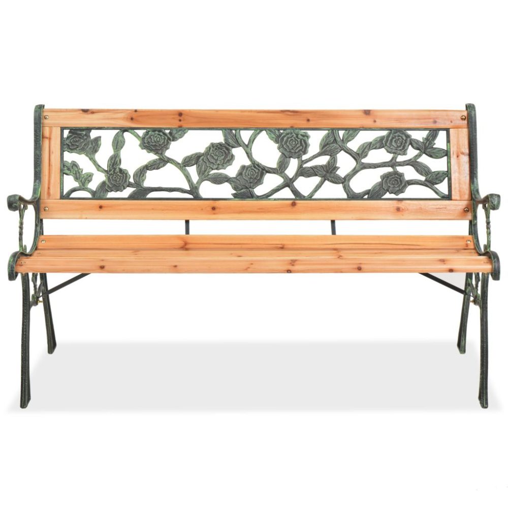 Este banco de jardim decorativo com o seu design clássico possui uma estrutura de madeira e ferro forjado de alta qualidade. Com um encosto decorativo de PVC, é muito encantador e a escolha perfeita para o seu jardim ou pátio. Também é uma adição perfeita para a parte da frente da sua casa.