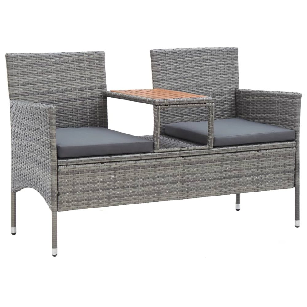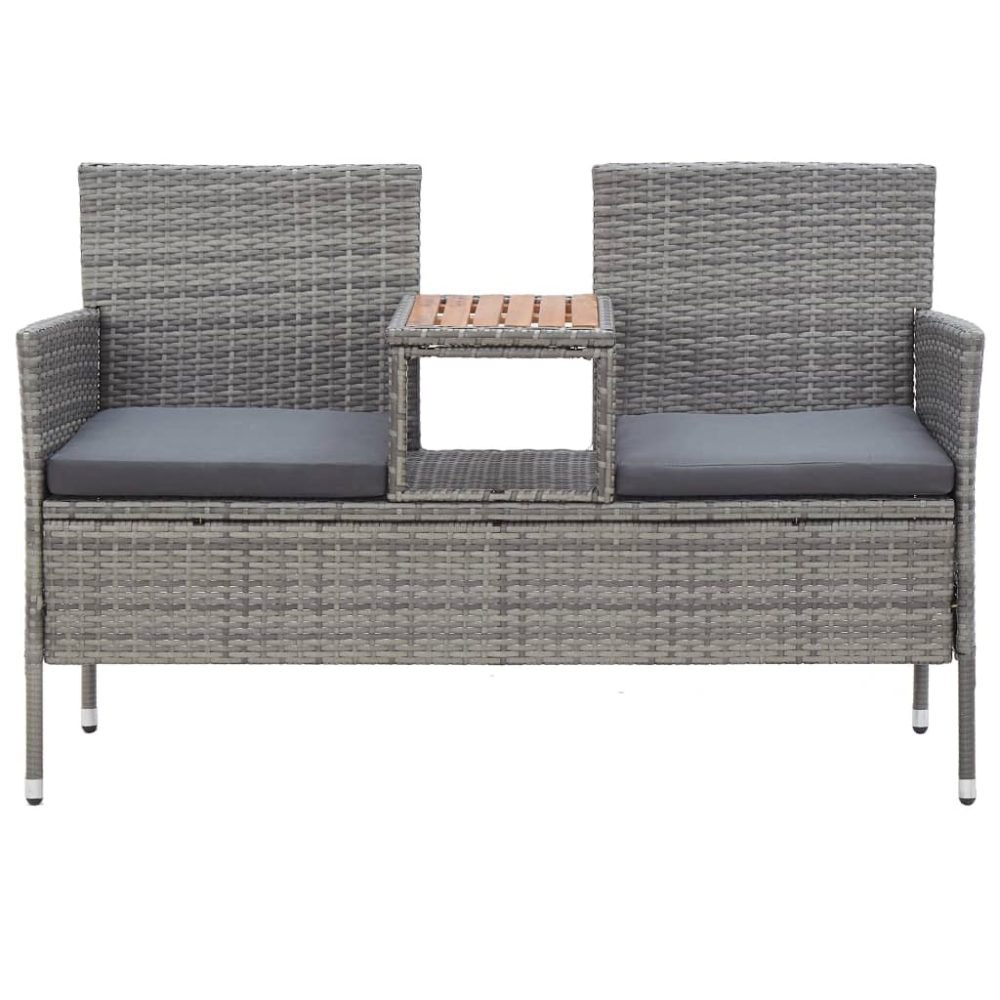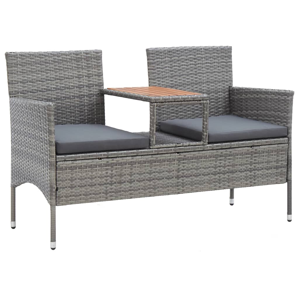 Graças ao vime PE impermeável e resistente às intempéries, o conjunto de bancos é fácil de limpar, robusto e adequado para uma utilização diária. O banco possui uma estrutura de ferro revestido a pó resistente e durável. Também é leve, facilitando a deslocação. Os dois assentos estão ligados por uma mesa de centro, na qual pode convenientemente manter as suas bebidas ou livros favoritos à mão. Os almofadões de assento são espessos, removíveis e muito confortáveis. As capas de poliéster fáceis de limpar, com fechos ocultos, podem ser removidas e lavadas.