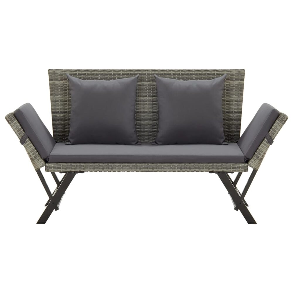 Feito em vime PE resistente às intempéries, este banco de jardim é fácil de limpar, durável e adequado para uma utilização diária. Possui uma estrutura de aço revestido a pó, o que o torna muito estável e durável. Pode ser convertido de um banco numa espreguiçadeira e de novo num banco, de forma rápida e fácil, graças aos lados ajustáveis. Os almofadões densamente acolchoados proporcionarão um conforto máximo e um suporte extra. Graças ao design com fecho de correr, a capa do almofadão é removível para facilitar a lavagem.