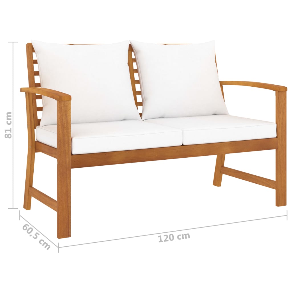 O banco é feito em madeira de acácia maciça de alta qualidade, uma madeira tropical resistente às intempéries e altamente durável. Graças ao acabamento a óleo, o conjunto de móveis de pátio apresenta uma cor quente e é fácil de limpar e cuidar. A entrega inclui ainda almofadões de assento e de encosto espessamente acolchoados para o máximo conforto.