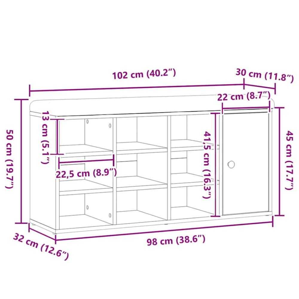 Mantenha o seu calçado bem organizado e sempre à mão com este banco sapateira! Material robusto: os derivados de madeira possuem uma qualidade excecional e oferecem uma superfície suave bem como força, estabilidade e resistência à humidade.Amplo espaço de arrumação: o banco de corredor possui um grande espaço de arrumação para manter os seus sapatos bem organizados e oferece uma divisão limpa e livre de confusão.Assento confortável: o almofadão de assento densamente acolchoado proporciona um ótimo conforto quando se sentar para calçar e descalçar os sapatos.Uso versátil: o banco é perfeito para usar como sapateira no corredor ou como banco de arrumação na sala de estar. Máximo de 110 kg por assento. Tenha em atenção o risco de fogos abertos e outras fontes de calor forte nas proximidades do produto. Este produto é alimentado por CC 5V, mas a fonte de alimentação USB de 5V certificada não está incluída. Uma tensão mais elevada pode provocar um sobreaquecimento e resultar em danos no dispositivo e no risco potencial de sobreaquecimento e incêndio.