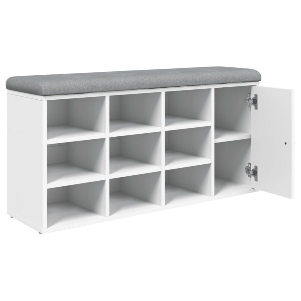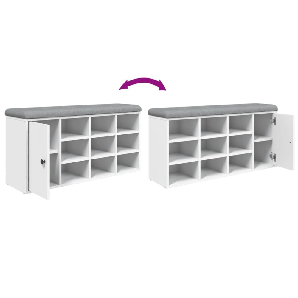 Mantenha o seu calçado bem organizado e sempre à mão com este banco sapateira! Material robusto: os derivados de madeira possuem uma qualidade excecional e oferecem uma superfície suave bem como força, estabilidade e resistência à humidade.Amplo espaço de arrumação: o banco de corredor possui um grande espaço de arrumação para manter os seus sapatos bem organizados e oferece uma divisão limpa e livre de confusão.Assento confortável: o almofadão de assento densamente acolchoado proporciona um ótimo conforto quando se sentar para calçar e descalçar os sapatos.Uso versátil: o banco é perfeito para usar como sapateira no corredor ou como banco de arrumação na sala de estar.