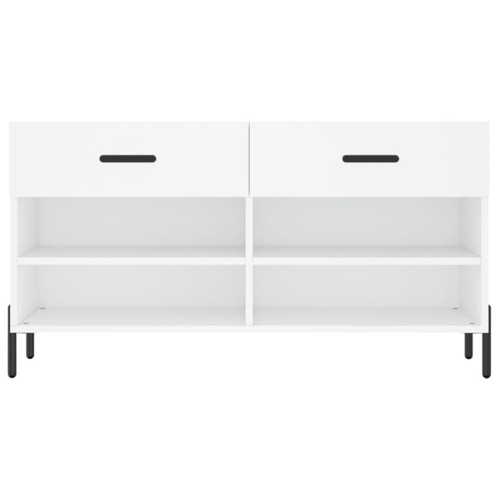 Arrume os seus sapatos com esta sapateira elegante e prática. É a escolha perfeita para manter os seus sapatos organizados. Material durável: os derivados de madeira possuem uma qualidade excecional e oferecem uma superfície suave bem como força, estabilidade e resistência à humidade.Amplo espaço de arrumação: a sapateira possui 2 gavetas e 4 prateleiras, proporcionando um amplo espaço para os seus sapatos e outros pequenos artigos.Tampo robusto: o tampo robusto da sapateira permite que se sente confortavelmente enquanto descalça ou calça os seus sapatos.Pés de ferro: os pés de ferro dão um toque industrial ao seu interior, enquanto asseguram estabilidade. Atenção:Para evitar que o produto se vire, deve utilizar o dispositivo de fixação na parede fornecido.