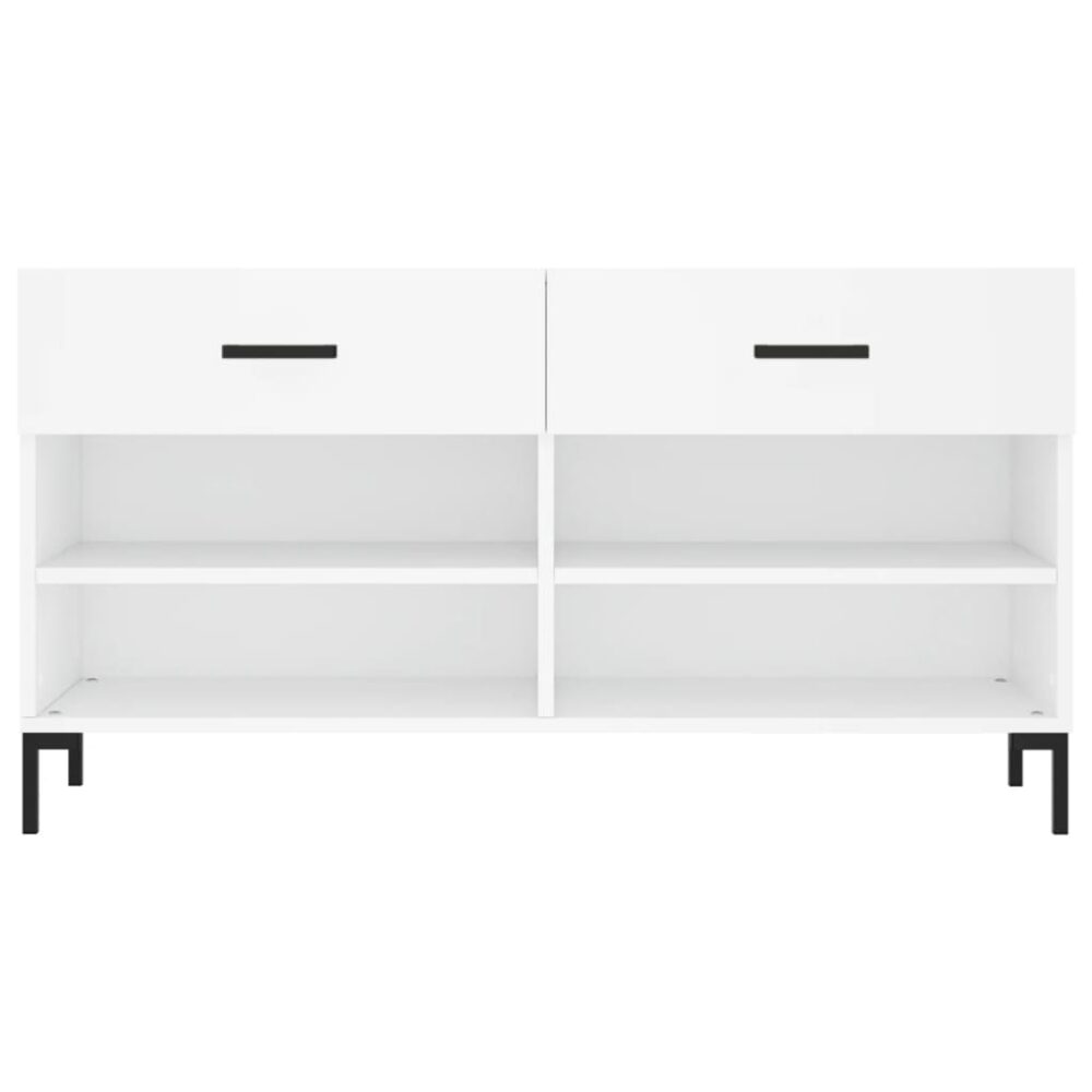Arrume os seus sapatos com esta sapateira elegante e prática. É a escolha perfeita para manter os seus sapatos organizados. Material durável: os derivados de madeira possuem uma qualidade excecional e oferecem uma superfície suave bem como força, estabilidade e resistência à humidade.Amplo espaço de arrumação: a sapateira possui 2 gavetas e 4 prateleiras, proporcionando um amplo espaço para os seus sapatos e outros pequenos artigos.Tampo robusto: o tampo robusto da sapateira permite que se sente confortavelmente enquanto descalça ou calça os seus sapatos.Pés de ferro: os pés de ferro dão um toque industrial ao seu interior, enquanto asseguram estabilidade. Atenção:Para evitar que o produto se vire, deve utilizar o dispositivo de fixação na parede fornecido.