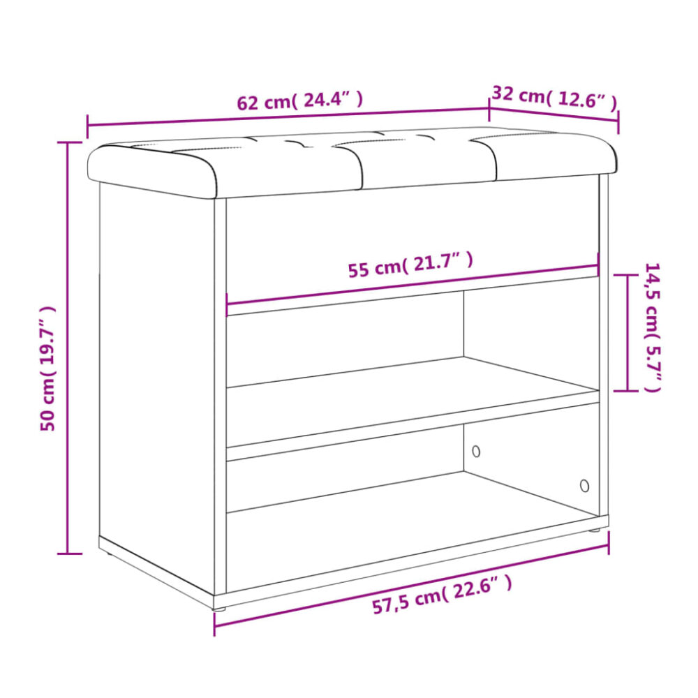 Banco sapateira 62x32x50 cm derivados madeira carvalho fumado - PORTES GRÁTIS