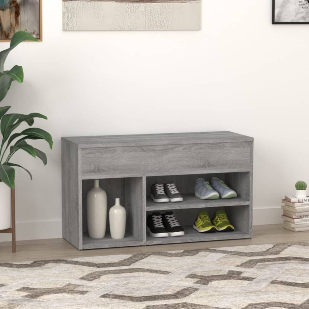 Banco sapateira 80x30x45cm derivados de madeira cinzento sonoma - PORTES GRÁTIS