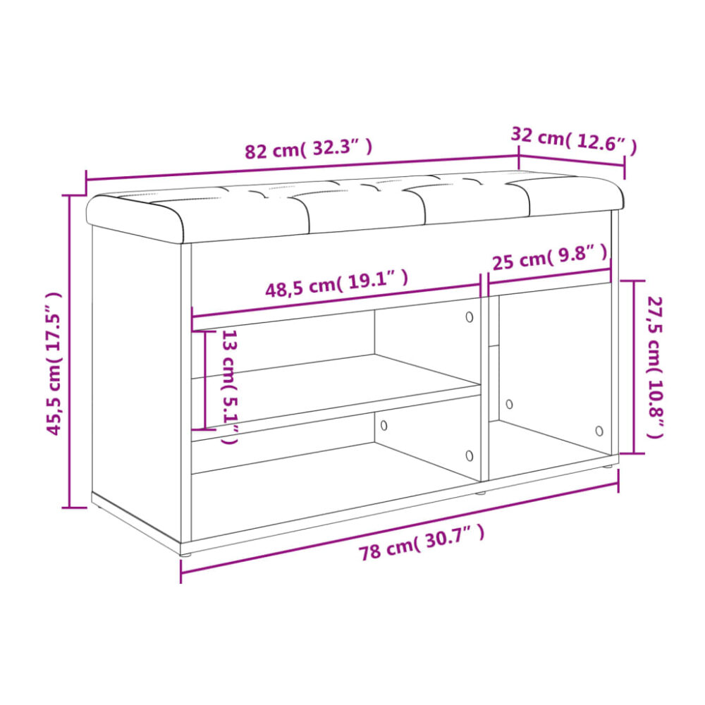 Mantenha o seu calçado bem organizado e sempre à mão com este banco sapateira! Material robusto: os derivados de madeira possuem uma qualidade excecional e oferecem uma superfície suave bem como força, estabilidade e resistência à humidade.Amplo espaço de arrumação: o banco de corredor possui um grande espaço de arrumação para manter os seus sapatos bem organizados e oferece uma divisão limpa e livre de confusão.Assento confortável: o almofadão de assento densamente acolchoado proporciona um ótimo conforto quando se sentar para calçar e descalçar os sapatos.Uso versátil: o banco é perfeito para usar como sapateira no corredor ou como banco de arrumação na sala de estar.