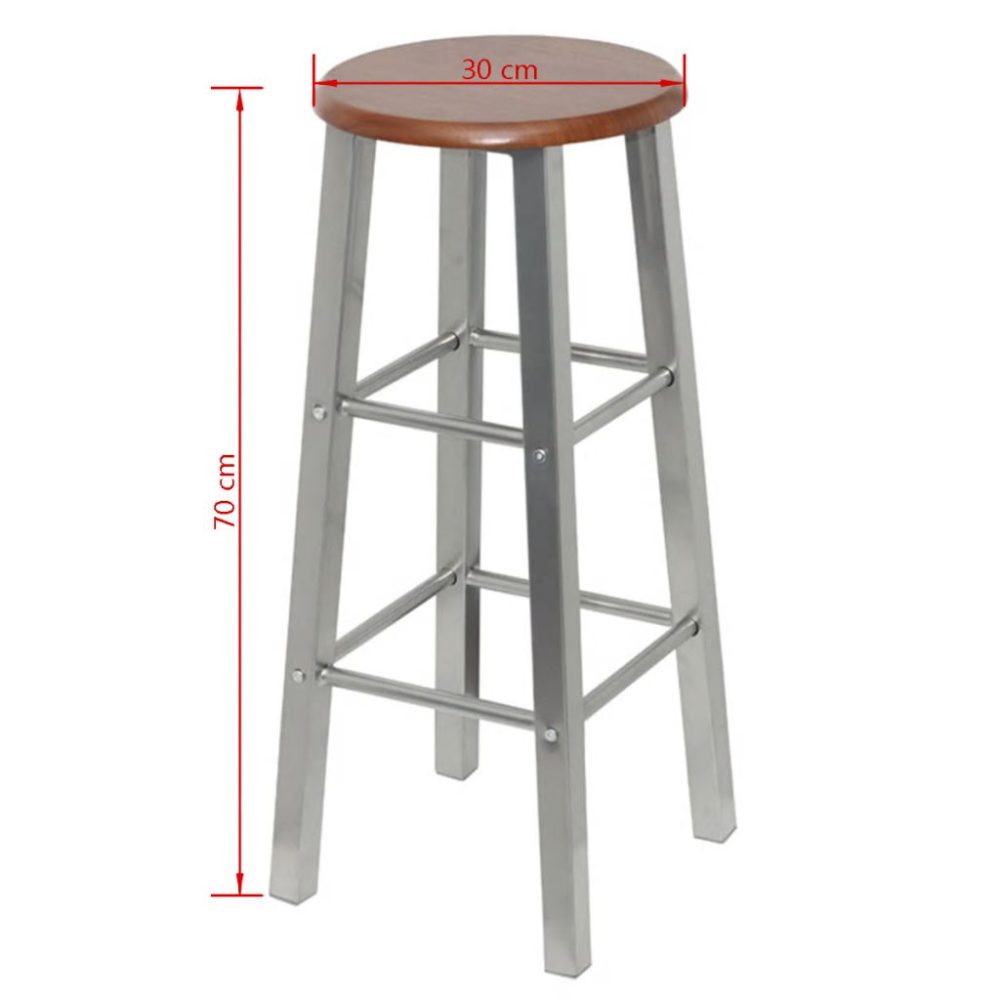 Estes dois bancos de bar têm um design clássico e moderno e são perfeitos para a sua casa, bem como um bar. Os bancos de bar têm apoios de pés embutidos em duas alturas diferentes, proporcionando-lhe um assento confortável durante toda a noite. O assento do banco de bar é feito de MDF castanho e a sua estrutura é feita de aço. Os bancos são facilmente montados e também são fáceis de limpar, se necessário.