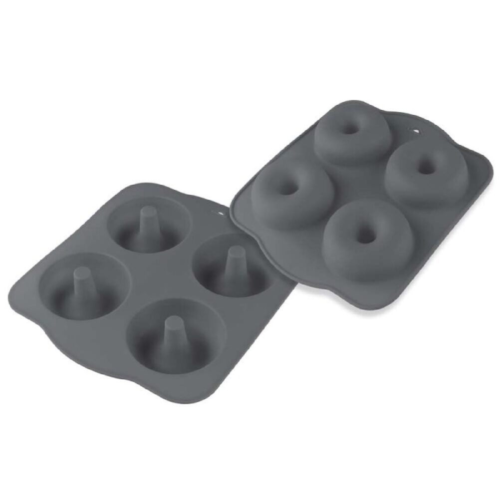 2 formas para donuts, cada uma com capacidade para 4 unidades, ideais para criar donuts macios e uniformes em poucos minutos.