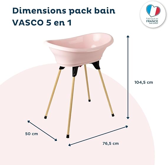 - Pacote de casa de banho completa: o pacote de banho para bebé VASCO 5 em 1 reúne todos os equipamentos essenciais para o banho de bebé. Inclui banheira, pé dobrável, mangueira de drenagem, espreguiçadeira de banho e termómetro.
