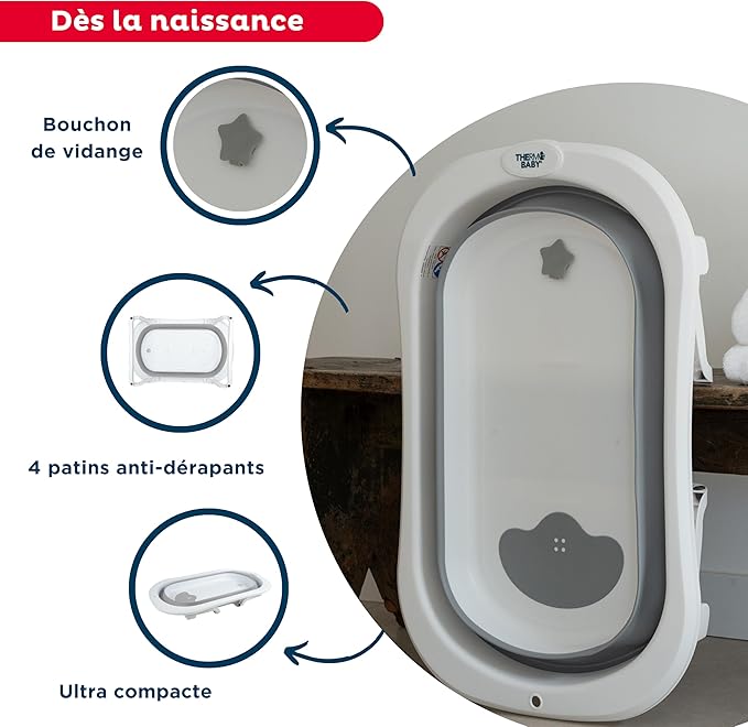 - Banheira compacta: Ideal para uso diário ou viagens, esta banheira ultracompacta ocupa um espaço mínimo sem descurar o conforto do bebé.