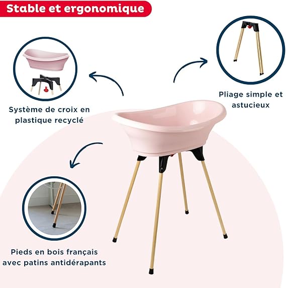 • Inovação patenteada para a segurança do bebé: graças a um inovador sistema patenteado de engate cruzado, a banheira permanece firmemente e estável para evitar o risco de queda. Segurança garantida para a criança!