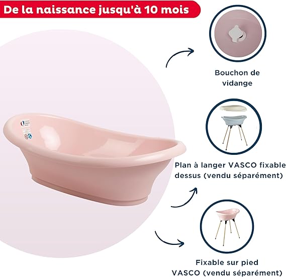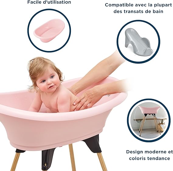 - Está na hora do banho. A banheira basco fabricada em França oferece um momento agradável para o seu bebé