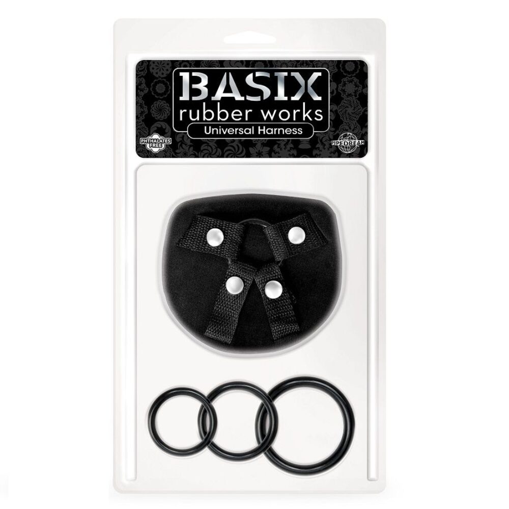 O arnês universal inclui 3 anéis para fixar o seu vibrador.