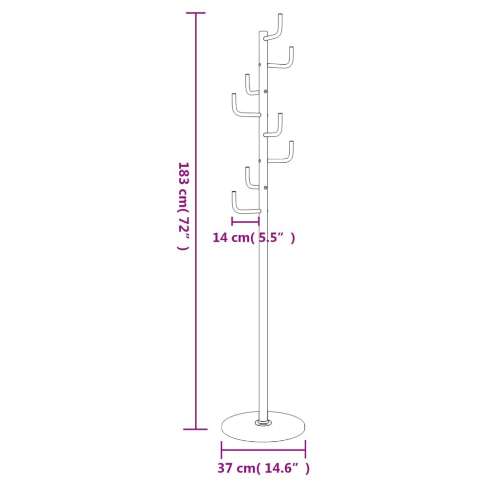 Este prático bengaleiro manterá os teus pertences organizados e facilmente acessíveis! Estrutura estável e robusta: o ferro é um material resistente e duro. É sem dúvida um dos materiais preferidos na construção industrial e de mobiliário. Feito de ferro, este bengaleiro é resistente e durável.Espaço de arrumação suficiente: o cabide inclui 8 ganchos de arrumação, o que proporciona muito espaço para pendurar artigos, incluindo roupa, malas, chapéus e muito mais. Com os ganchos em diferentes níveis, o suporte ajuda-o a manter as suas coisas arrumadas de uma forma ordenada.Base robusta: a base é feita de mármore, por isso é suficientemente pesada para que o cabide se mantenha firme.Amplas aplicações: este prático bengaleiro de pé é perfeito para colocar no seu corredor, sala de estar, quarto ou em qualquer lugar onde precise de ter uma maior organização e manter a sua casa limpa e arrumada! Útil saber:Cada base de mármore possui um padrão único. A entrega é aleatória, assegurando a exclusividade e a individualidade do seu produto.