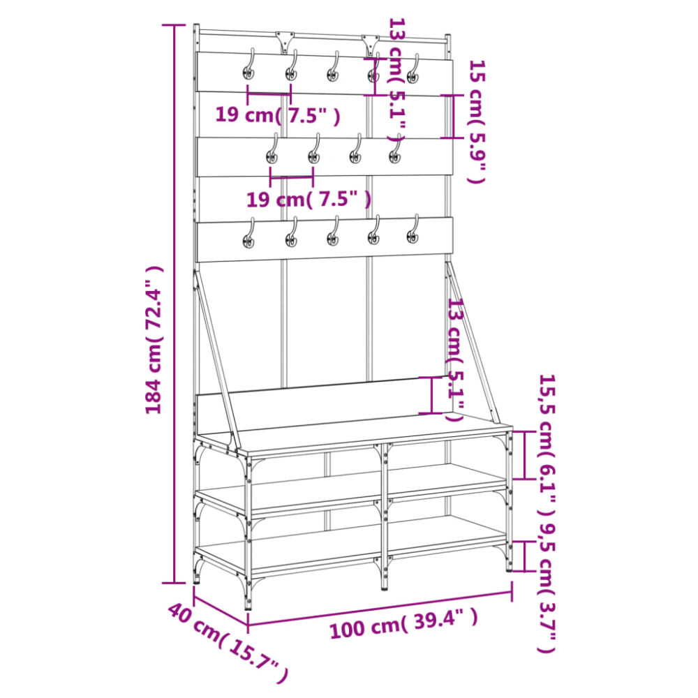 Bengaleiro c/ arrumação de calçado 100x40x184 cm preto - PORTES GRÁTIS