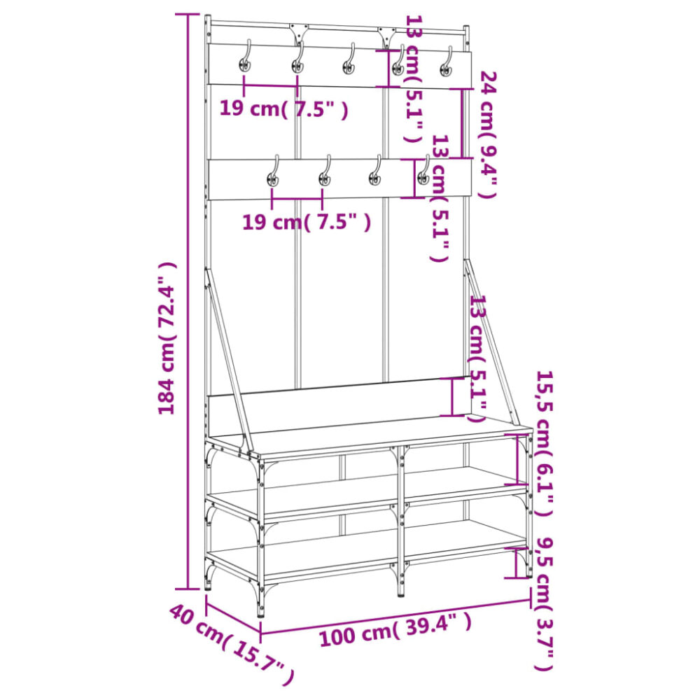 Bengaleiro c/ arrumação de calçado 100x40x184 cm preto - PORTES GRÁTIS