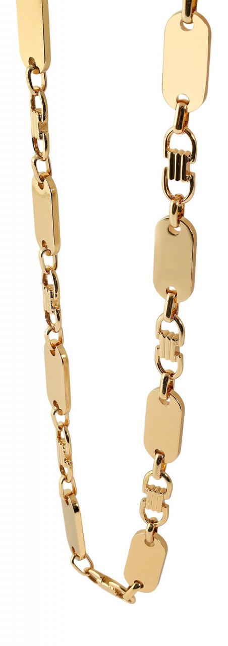 A corrente “Bent” fabricada em aço inoxidável está disponível em três comprimentos diferentes, 55 cm, 60 cm e 70 cm. As placas de 22 x 10 mm oferecem espaço suficiente para gravações pessoais, não há limites para a sua criatividade. A corrente ganha um visual impressionante ao trocar as placas de gravação pelos elementos estruturados. O fecho lagosta oferece segurança e facilita a colocação e remoção da corrente.