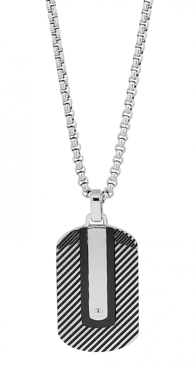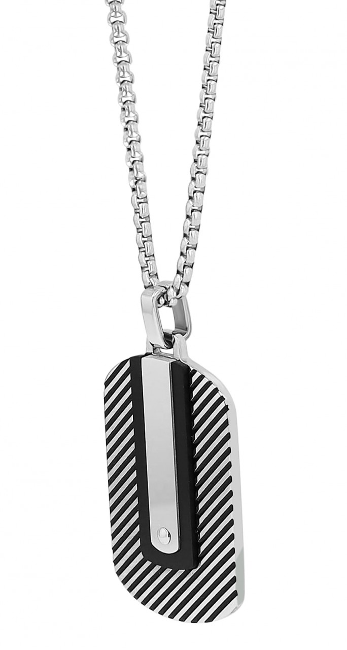 O colar da marca Akzent é feito de aço inoxidável em padrão de ervilha e apresenta um pingente gravado no formato de uma etiqueta de identificação. O pingente também é feito de aço inoxidável robusto e durável e oferece a possibilidade de ser gravado com uma variedade de designs diferentes. O design individual faz desta joia uma companheira diária indispensável para ela e para ele. O pingente gravado tem 35 mm de comprimento, 20 mm de largura e 4 mm de espessura. Além disso, a frente tem um visual bicolor, a parte de trás é prata fosca e também pode ser gravada. A corrente tem um comprimento total de 60 cm, uma espessura de 2,5 mm e é presa ao pescoço com um mosquetão clássico. Por todo o lado, a corrente gravada chama a atenção e completa qualquer look com estilo.