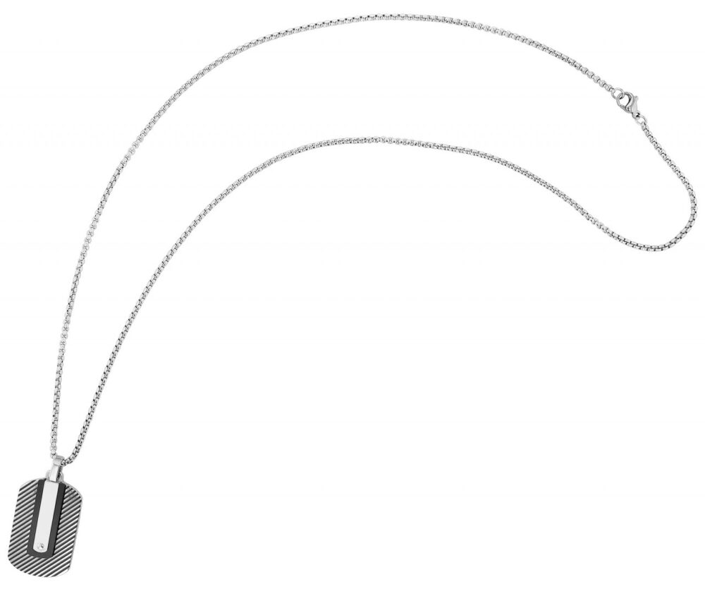 O colar da marca Akzent é feito de aço inoxidável em padrão de ervilha e apresenta um pingente gravado no formato de uma etiqueta de identificação. O pingente também é feito de aço inoxidável robusto e durável e oferece a possibilidade de ser gravado com uma variedade de designs diferentes. O design individual faz desta joia uma companheira diária indispensável para ela e para ele. O pingente gravado tem 35 mm de comprimento, 20 mm de largura e 4 mm de espessura. Além disso, a frente tem um visual bicolor, a parte de trás é prata fosca e também pode ser gravada. A corrente tem um comprimento total de 60 cm, uma espessura de 2,5 mm…