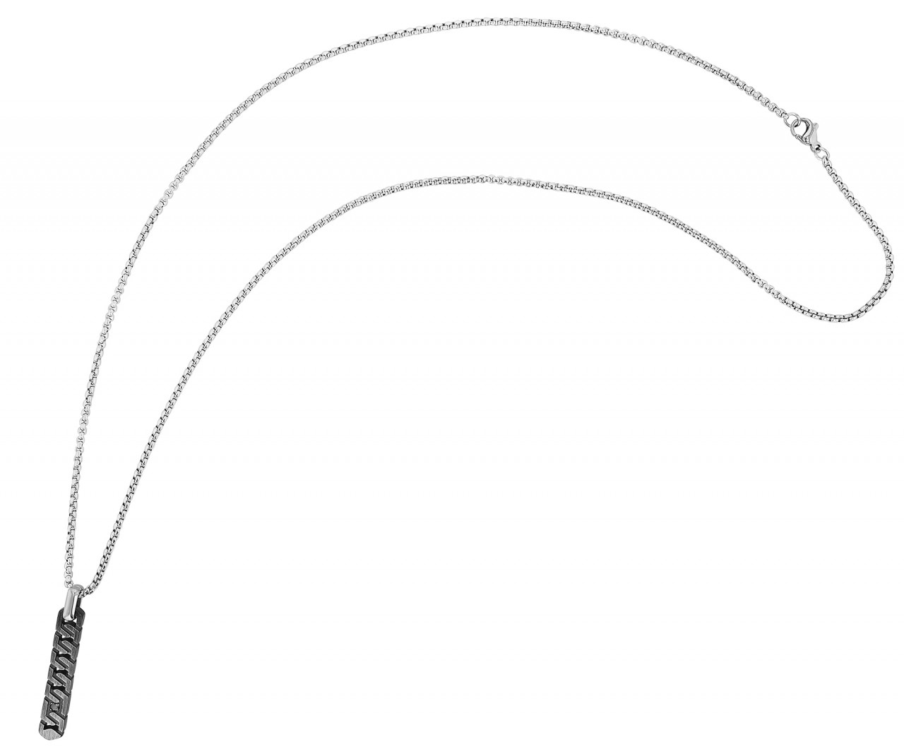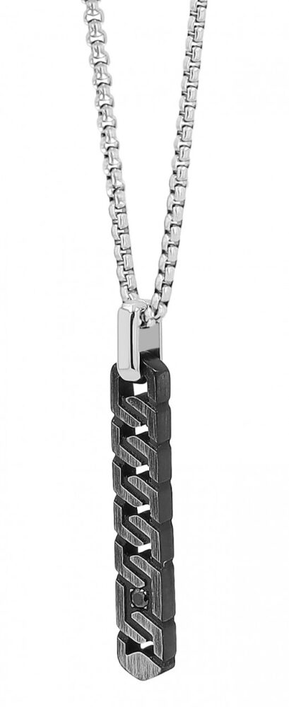 O colar Erbs da marca Akzent é feito de aço inoxidável. O material garante uma longa vida útil ao colar. A corrente é prateada. A corrente é presa na parte de trás do pescoço com um fecho de pressão de aço inoxidável. O comprimento da corrente é de 60 cm e a espessura da corrente é de 2 mm. O colar também possui um pingente de aço inoxidável. O tamanho do pingente é 6 mm de largura e 35 mm de altura. O destaque visual é uma pedra simili preta que foi incorporada ao pingente de corrente preta. Esta joia é perfeita para ocasiões especiais ou para adicionar um toque de elegância à vida cotidiana.