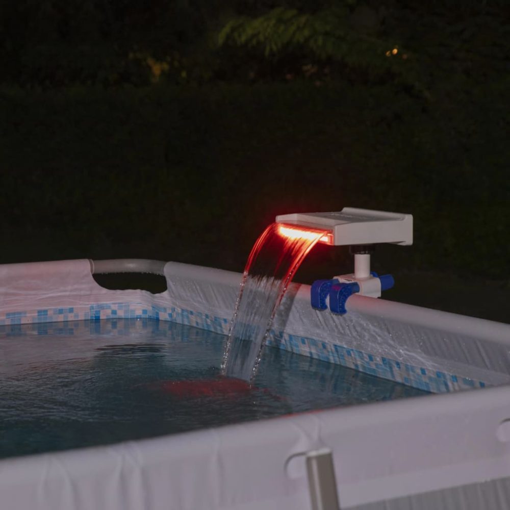 Esta cascata é compatível com todos os sistemas de filtragem com taxas de fluxo de 2006-11355 L/h. Com uma incrível variedade de luzes brilhantes, poderá desfrutar de um arco-íris de cores e escolher entre 8 modos, incluindo 7 cores fixas e 1 rotativa. A cascata translucida e suave melhora a sua experiência de natação, produzindo um certo efeito estético e de circulação da água. Uma vez posicionada à beira da piscina, nada mais há a fazer do que relaxar e desfrutar da cascata com as suas cores vivas!