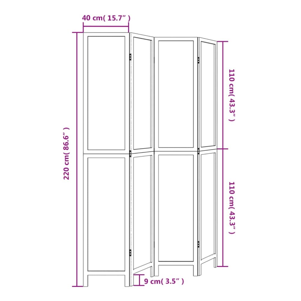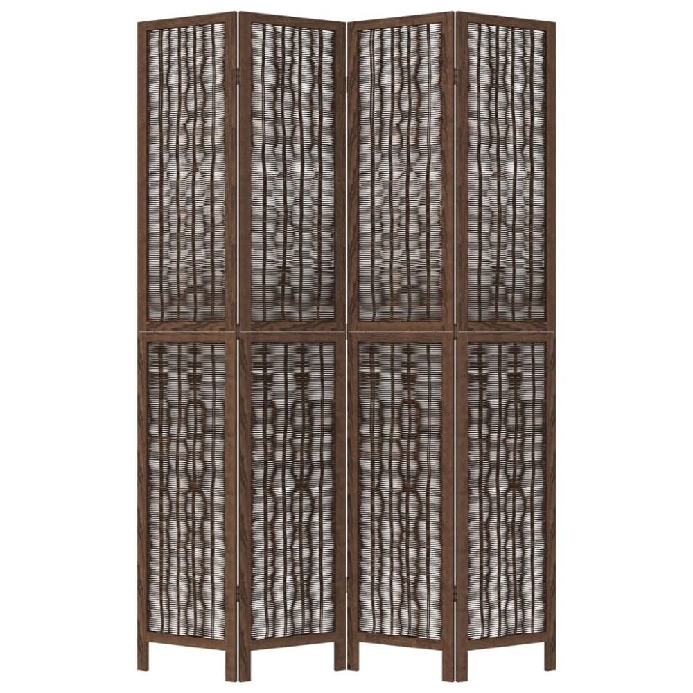 Biombo c/ 4 painéis madeira de paulownia maciça castanho-escuro - PORTES GRÁTIS