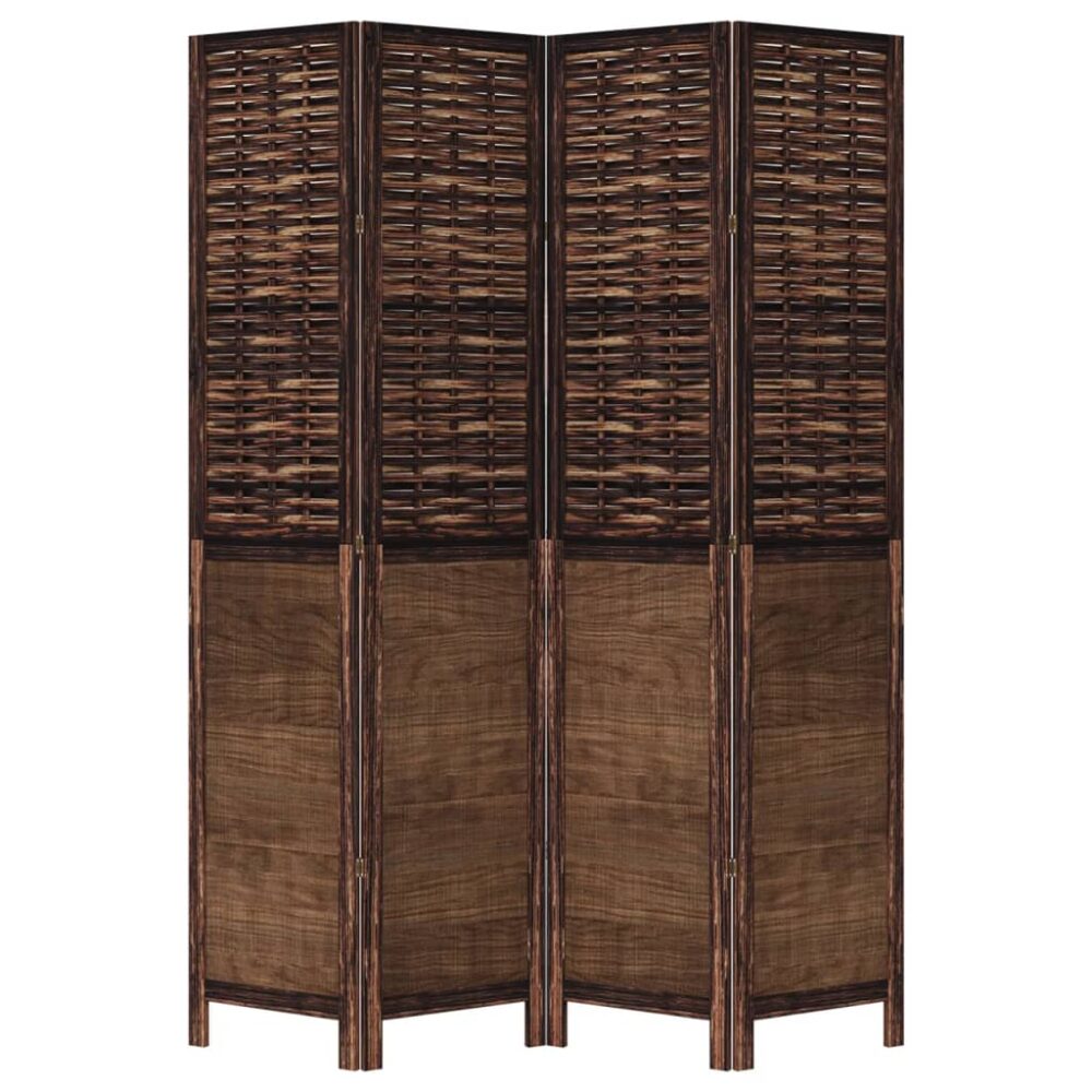 Dê elegância e um toque decorativo atraente ao seu espaço com este encantador biombo de divisão. Durável e fácil de limpar: o painel de privacidade foi entrançado com tiras de bambu natural e derivados de madeira, o que o torna fácil de limpar e durável.Estrutura estável: a estrutura em madeira de paulownia maciça assegura robustez e estabilidade. A madeira de paulownia maciça é um bonito material natural. A madeira de paulownia é altamente resistente a insetos e ao apodrecimento.Flexível e fácil de dobrar: cada painel está interligado com 3 dobradiças metálicas e os painéis superior e inferior estão interligados com dobradiças 2 em 1 ocultas. Assim, o biombo pode ser facilmente dobrado de acordo com as suas necessidades de poupança de espaço.Multiusos: a divisória é ótima para criar um espaço privado no seu quarto, sala de estar, escritório e outros interiores. Também pode colocá-la em frente a uma janela para bloquear a luz solar intensa.Aspeto queimado: com um aspeto queimado, esta divisória dobrável confere carácter e decoração ao seu espaço. Atenção:Apenas para utilização no interior.