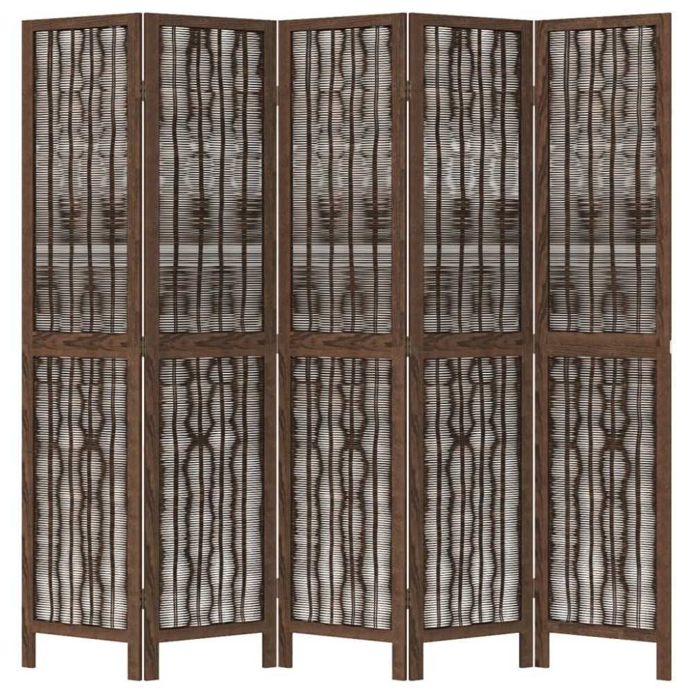Biombo c/ 5 painéis madeira de paulownia maciça castanho-escuro - PORTES GRÁTIS