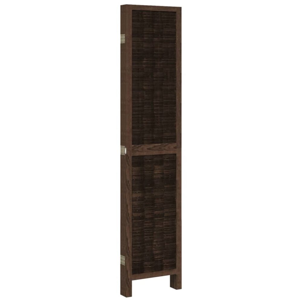Dê elegância e um toque decorativo atraente ao seu espaço com este encantador biombo de divisão. Durável e fácil de limpar: o painel de privacidade é feito de ramos de salgueiro, o que o torna fácil de limpar e durável.Estrutura estável: a estrutura em madeira de paulownia maciça assegura robustez e estabilidade. A madeira de paulownia maciça é um bonito material natural. A madeira de paulownia é altamente resistente a insetos e ao apodrecimento.Flexível e fácil de dobrar: cada painel está interligado com 3 dobradiças metálicas e os painéis superior e inferior estão interligados com dobradiças 2 em 1 ocultas. Assim, o biombo pode ser facilmente dobrado de acordo com as suas necessidades de poupança de espaço.Multiusos: a divisória é ótima para criar um espaço privado no seu quarto, sala de estar, escritório e outros interiores. Também pode colocá-la em frente a uma janela para bloquear a luz solar intensa.Aspeto queimado: com um aspeto queimado, esta divisória dobrável confere carácter e decoração ao seu espaço. Atenção:Apenas para utilização no interior.