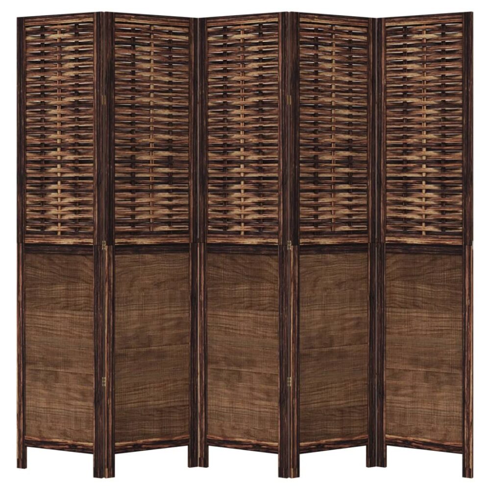 Biombo c/ 5 painéis madeira de paulownia maciça castanho-escuro - PORTES GRÁTIS