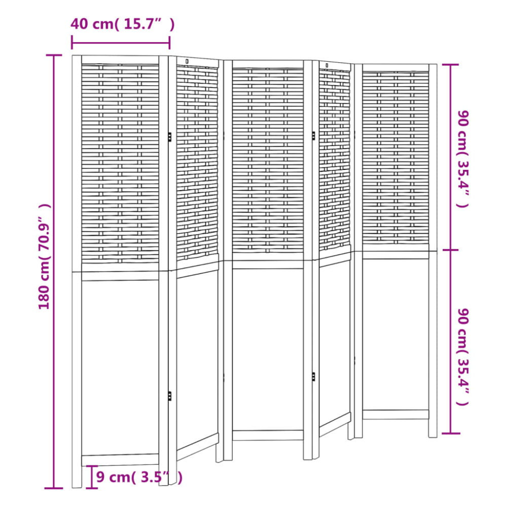 Dê elegância e um toque decorativo atraente ao seu espaço com este encantador biombo de divisão. Durável e fácil de limpar: o painel de privacidade foi entrançado com tiras de bambu natural e derivados de madeira, o que o torna fácil de limpar e durável.Estrutura estável: a estrutura em madeira de paulownia maciça assegura robustez e estabilidade. A madeira de paulownia maciça é um bonito material natural. A madeira de paulownia é altamente resistente a insetos e ao apodrecimento.Flexível e fácil de dobrar: cada painel está interligado com 3 dobradiças metálicas e os painéis superior e inferior estão interligados com dobradiças 2 em 1 ocultas. Assim, o biombo pode ser facilmente dobrado de acordo com as suas necessidades de poupança de espaço.Multiusos: a divisória é ótima para criar um espaço privado no seu quarto, sala de estar, escritório e outros interiores. Também pode colocá-la em frente a uma janela para bloquear a luz solar intensa.Aspeto queimado: com um aspeto queimado, esta divisória dobrável confere carácter e decoração ao seu espaço. Atenção:Apenas para utilização no interior.