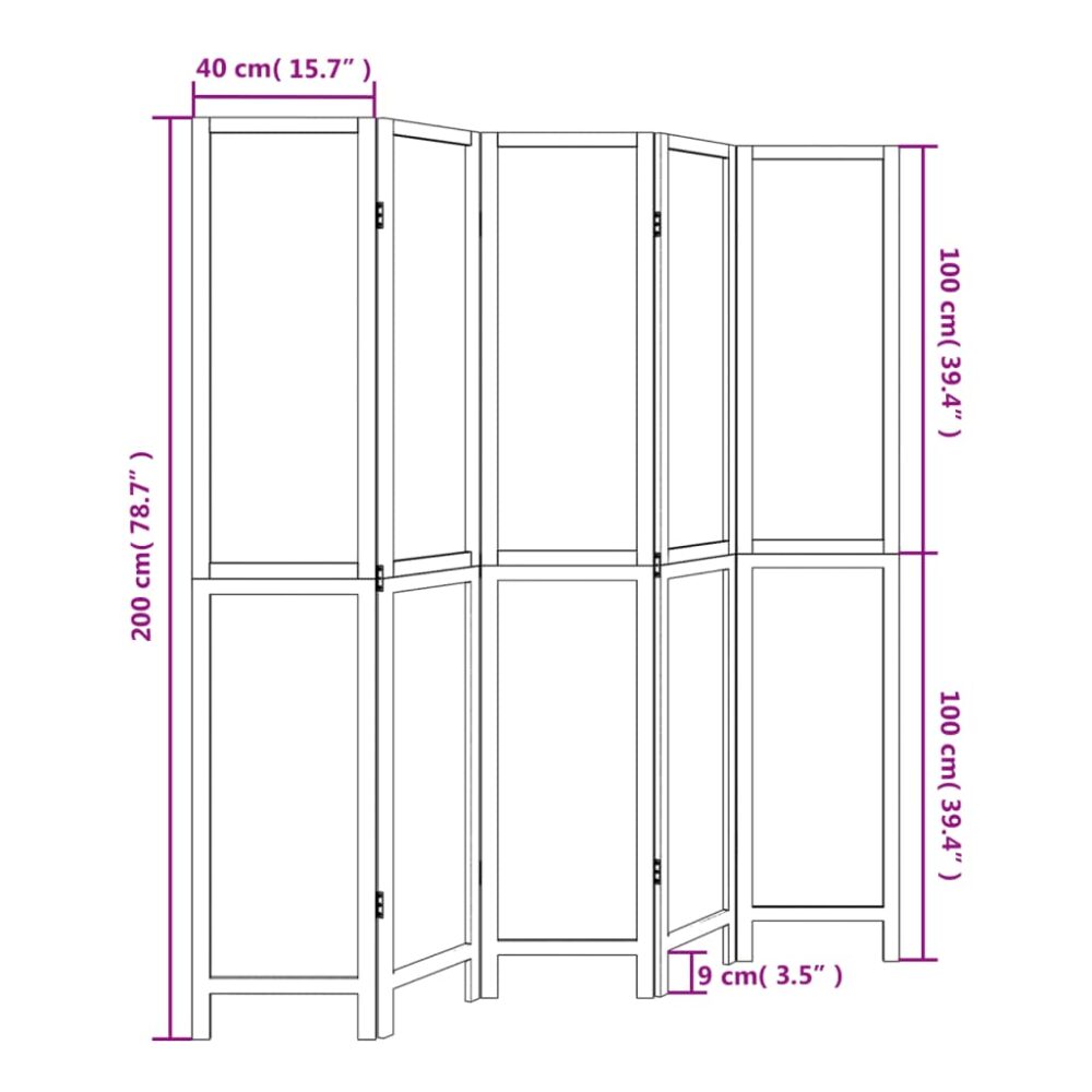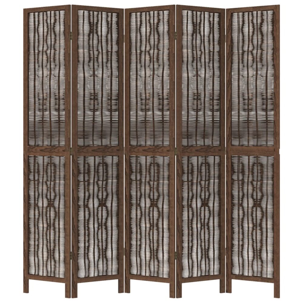 Biombo c/ 5 painéis madeira de paulownia maciça castanho-escuro - PORTES GRÁTIS
