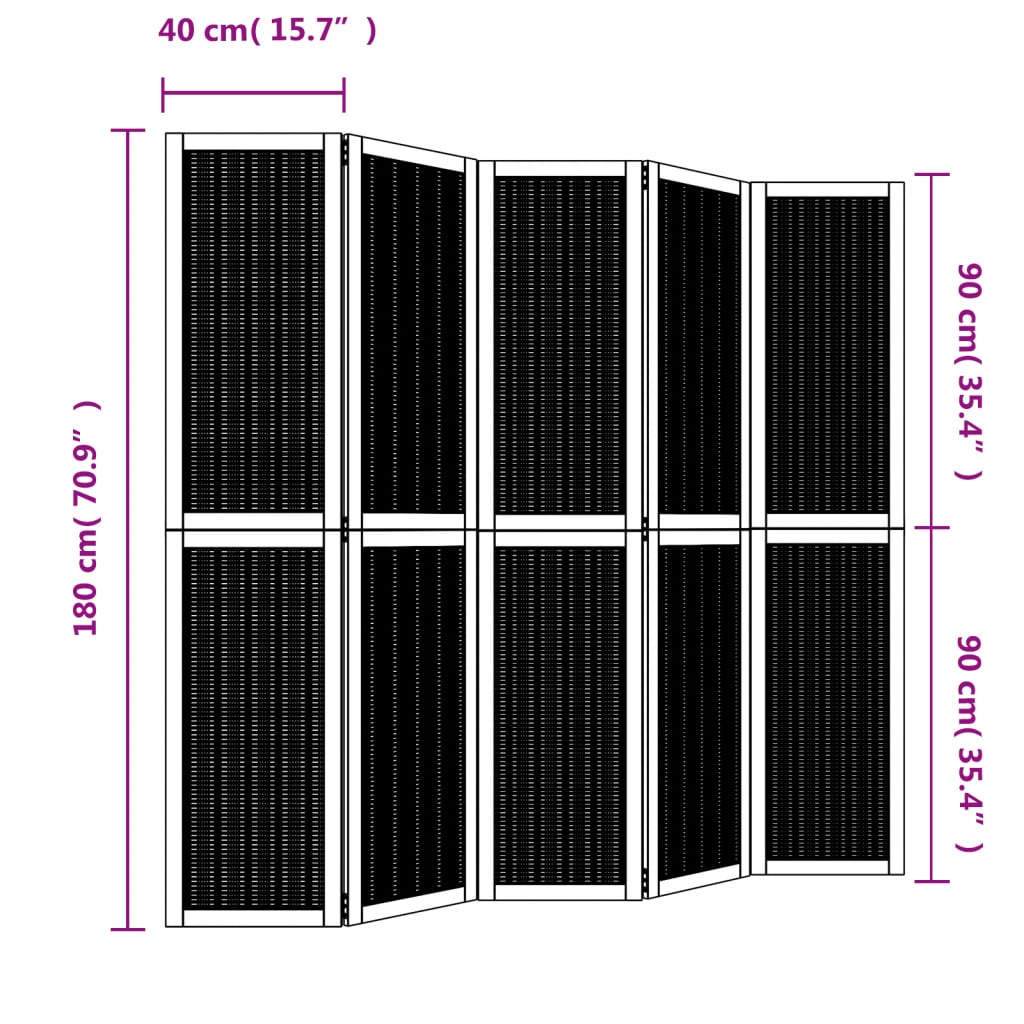 Biombo c/ 5 painéis madeira de paulownia maciça castanho - PORTES GRÁTIS