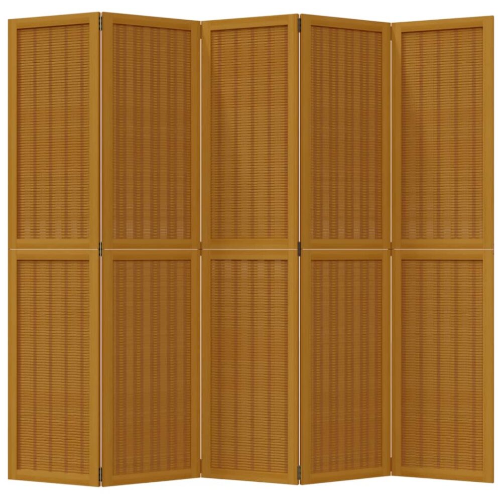 Biombo c/ 5 painéis madeira de paulownia maciça castanho - PORTES GRÁTIS