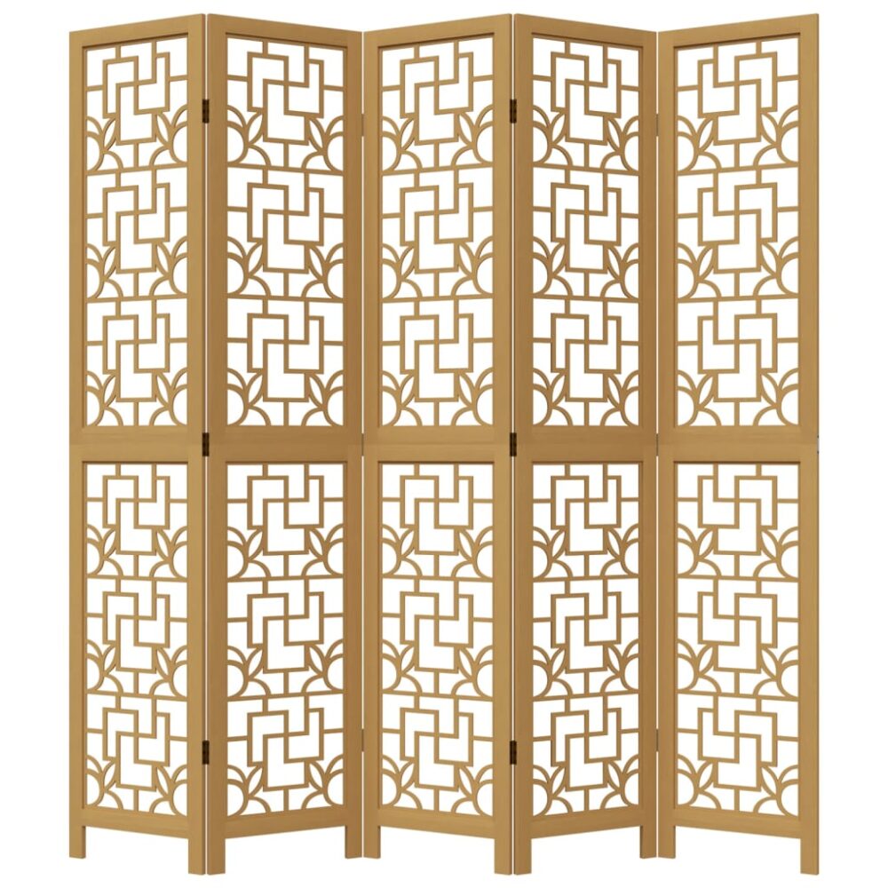 Biombo c/ 5 painéis madeira de paulownia maciça castanho - PORTES GRÁTIS