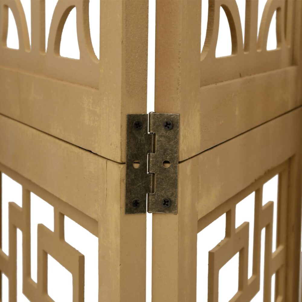 Dê elegância e um toque decorativo atraente ao seu espaço com este encantador biombo de divisão. Durável e fácil de limpar: o painel de privacidade é feito de derivados de madeira, o que o torna fácil de limpar e durável. Estrutura estável: a estrutura em madeira de paulownia maciça assegura robustez e estabilidade. A madeira de paulownia maciça é um bonito material natural. A madeira de paulownia é altamente resistente a insetos e ao apodrecimento. Flexível e fácil de dobrar: cada painel está interligado com 3 dobradiças metálicas e os painéis superior e inferior estão interligados com dobradiças 2 em 1 ocultas. Assim, o biombo pode ser facilmente dobrado de acordo com as suas necessidades de poupança de espaço. Multiusos: a divisória é ótima para criar um espaço privado no seu quarto, sala de estar, escritório e outros interiores. Também pode colocá-la em frente a uma janela para bloquear a luz solar intensa. Atenção:Apenas para utilização no interior.