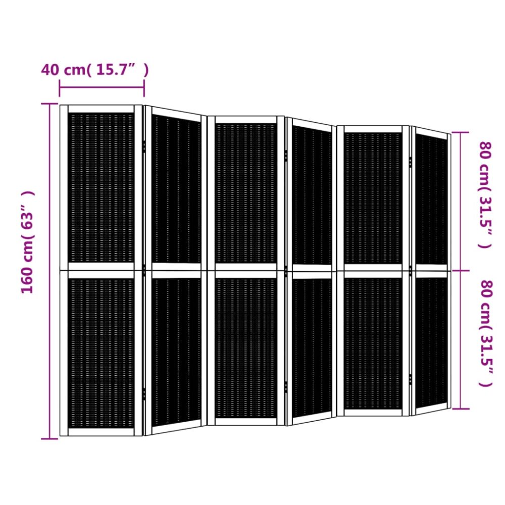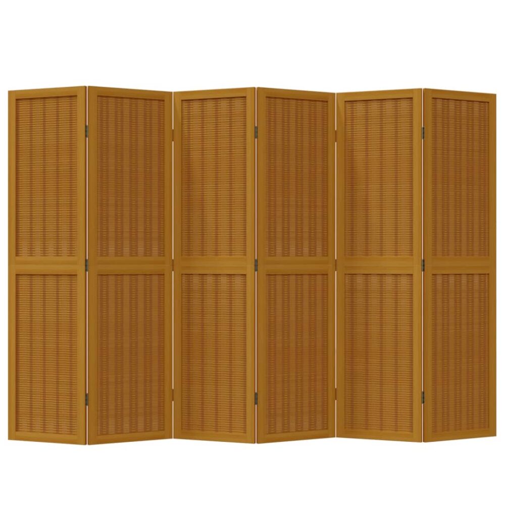 Biombo c/ 6 painéis madeira de paulownia maciça castanho - PORTES GRÁTIS