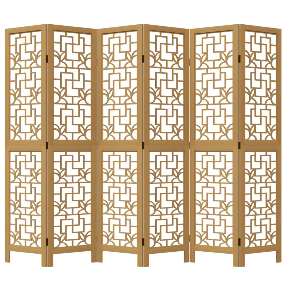 Biombo c/ 6 painéis madeira de paulownia maciça castanho - PORTES GRÁTIS