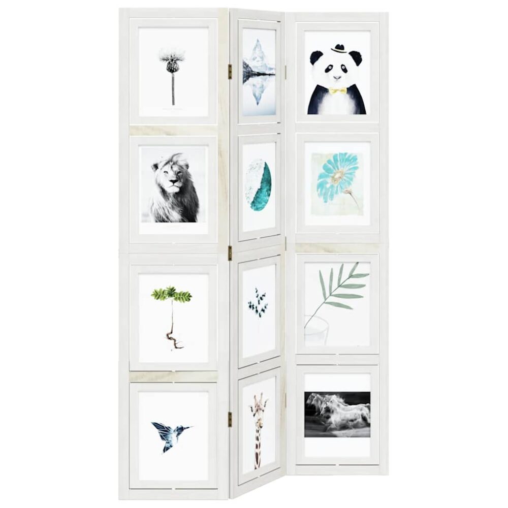 Dê elegância e um toque decorativo atraente ao seu espaço com este encantador biombo de divisão. Durável e fácil de limpar: o painel de privacidade é feito em madeira de paulownia maciça, tornando-o fácil de limpar e durável. A estrutura em madeira de paulownia maciça assegura robustez e estabilidade. A madeira de paulownia maciça é um bonito material natural altamente resistente a insetos e ao apodrecimento.Flexível e fácil de dobrar: cada painel está interligado com 3 dobradiças metálicas e os painéis superior e inferior estão interligados com dobradiças 2 em 1 ocultas. Assim, o biombo pode ser facilmente dobrado de acordo com as suas necessidades de poupança de espaço.Design atraente: cada moldura pode ser rodada verticalmente, permitindo-lhe colocar as suas fotografias favoritas em qualquer posição, tornando-as no destaque da sua divisão.Multiusos: a divisória é ótima para criar um espaço privado no seu quarto, sala de estar, escritório e outros interiores. Também pode colocá-la em frente a uma janela para bloquear a luz solar intensa. Atenção:Apenas para utilização no interior.