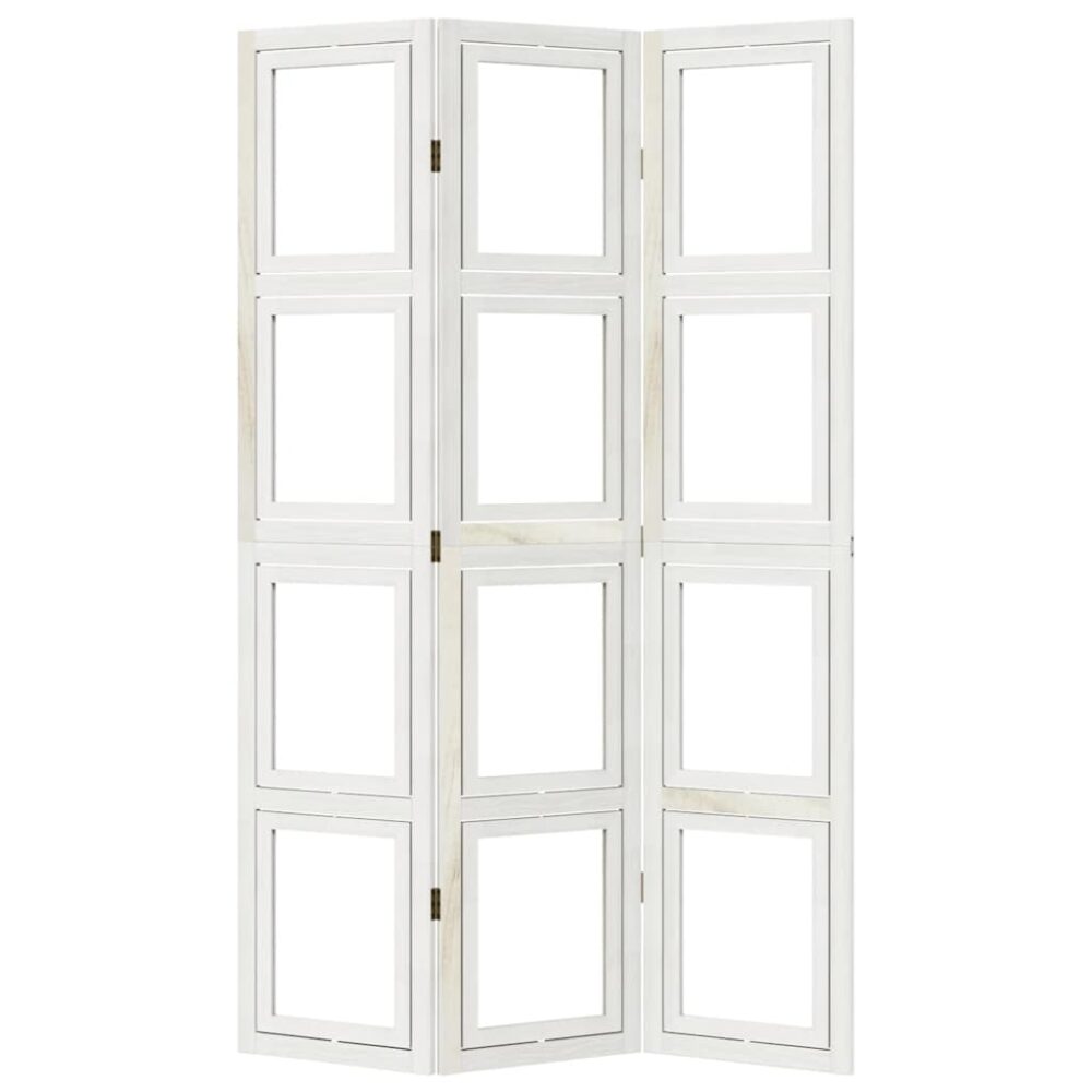 Biombo com 3 painéis madeira de paulownia maciça branco - PORTES GRÁTIS