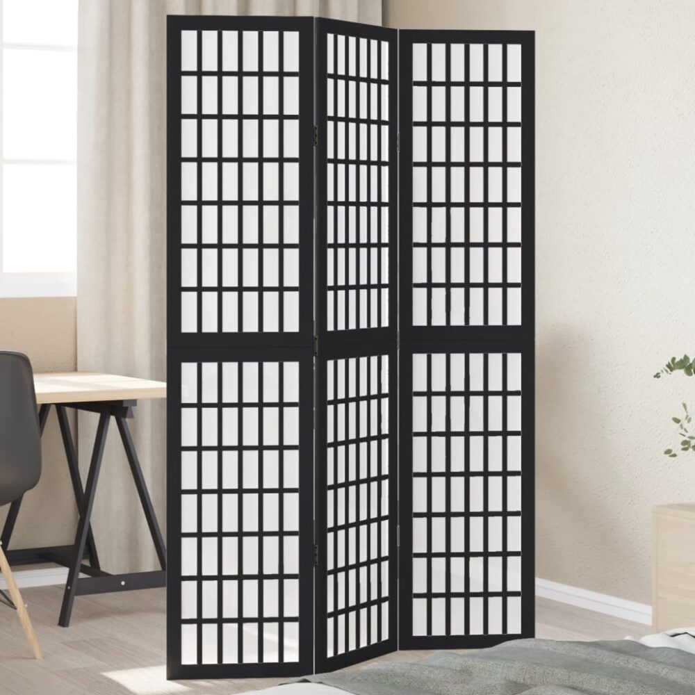 Biombo com 3 painéis madeira de paulownia maciça preto - PORTES GRÁTIS