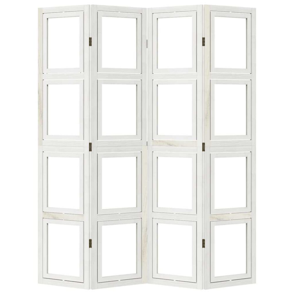 Biombo com 4 painéis madeira de paulownia maciça branco - PORTES GRÁTIS