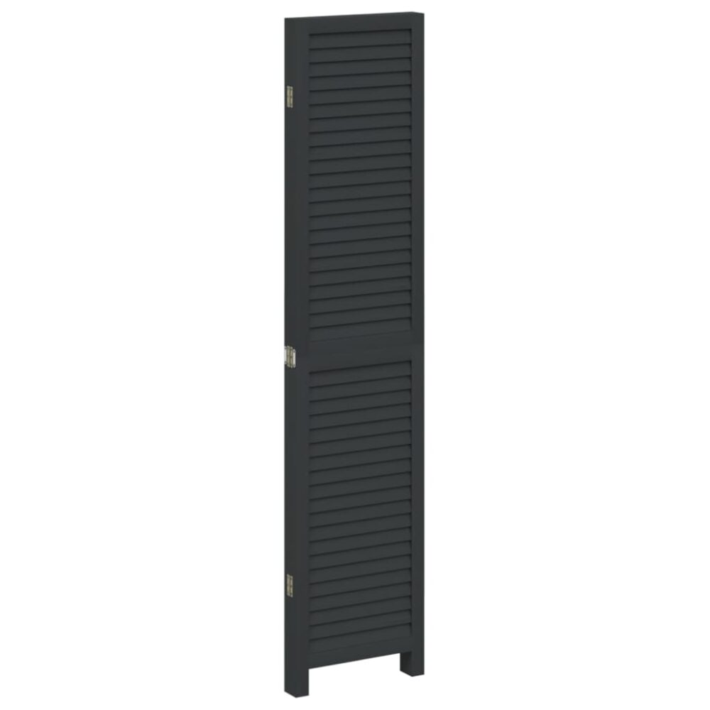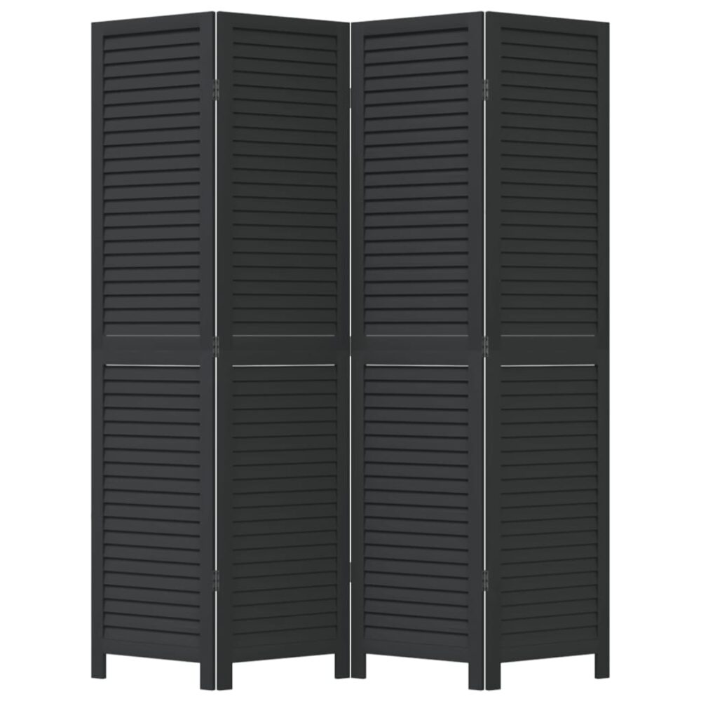 Biombo com 4 painéis madeira de paulownia maciça preto - PORTES GRÁTIS